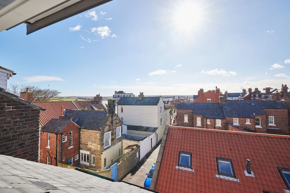 Mumbles Cottage is a truly special stay in the heart of Whitby. Offering a cosy living room, kitchen diner, downstairs WC, three bedrooms, a family bathroom, a private patio area and a large driveway with space for two large vehicles, you’ll be treated to a truly spectacular holiday home with plenty of perks. Head to the living room and you’ll find a homely space. Benefiting from a large bay window which floods the room with light, this room is bright and welcoming. The perfect place to retreat to after a day exploring the North Yorkshire coast, you can relax on the sofa or one of the armchairs and turn on the TV to enjoy Freeview. Fully equipped for self-catering stays, the kitchen in Mumbles Cottage has everything you could need to prepare home cooked meals. Ultra stylish, the kitchen features blue cabinets and vintage style tiles. Modern appliances and amenities include an oven, hob, kettle, toaster, microwave, fridge freezer, washing machine and dishwasher. Also sharing this space is the dining area which features a light wood dining table and two matching benches. Head upstairs to the first floor and you’ll find two bedrooms as well as the family bathroom. The master bedroom benefits from a King size four poster bed, a dressing table and a wardrobe. Ideal for children and teenagers, the second bedroom is a twin. Modern and spacious, the family bathroom benefits from a large walk in shower as well as a WC and basin. Please note there is also a separate WC on the ground floor. Take the stairs again to the second floor and you’ll find the third bedroom. With sloped ceilings and skylight windows, this space is cosy and relaxing. A double bed, chest of drawers and comfortable chairs complete the room. Outside you’ll find a large, private south facing patio area. A real treat in the heart of Whitby, you can relax outside in the sunshine during your stay. If you are travelling in a large group, you can reserve both Mumbles Cottage and Tenby Cottage. These two properties are located next door to one another and sleep up to 12 guests in total.