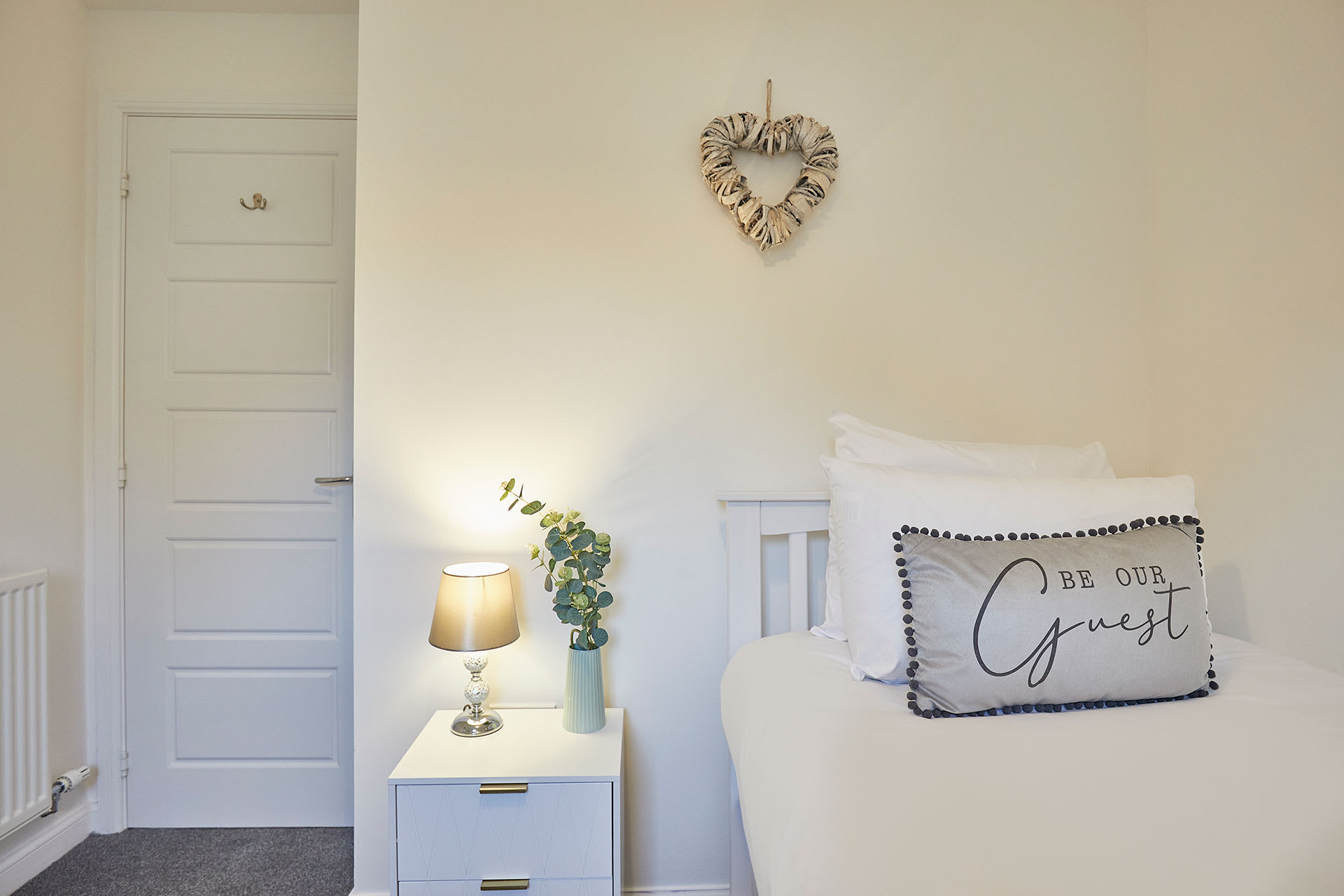 Redsky is a comfortable property with a welcoming feel and homely interiors. The ground floor of the property is made up of the living room and kitchen-dining area. The living area is a bright space with comfy sofas and teal blue occasional chair. The perfect space to enjoy a peaceful evening watching your favourite tv shows. The fully equipped kitchen features everything you should need for a short break and has plenty of space for preparing meals. The dining area is spacious and the wooden rectangle table seats up to 8 guests so you can enjoy family breakfasts or celebratory meals together. All four bedrooms and the family bathroom are located on the first floor. The bedrooms have a selection of bed sizes; King size, double, bunk beds and one single. The master room with king size bed also benefits from an ensuite shower room. The family bathroom has a bath with overhead shower, WC and basin. Outside you’ll find a fully enclosed garden with a Jack & Jill wooden chair. This is a relaxing space in a beautiful setting, decorated with flowers and plants. What’s more, you’ll even be able to see the North Sea on a clear day.