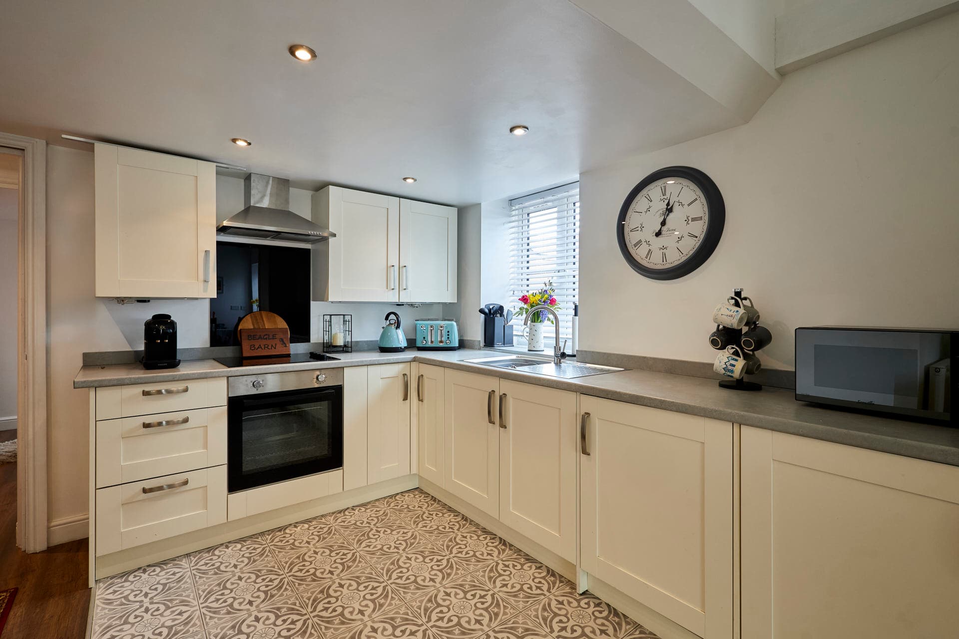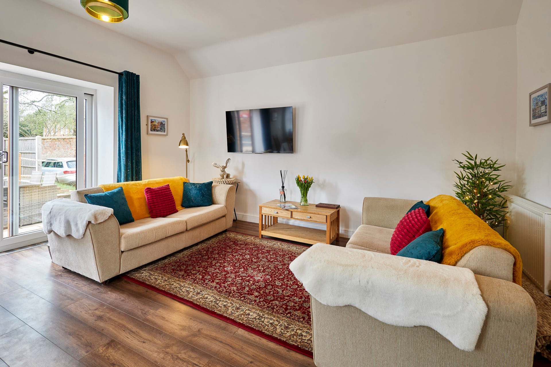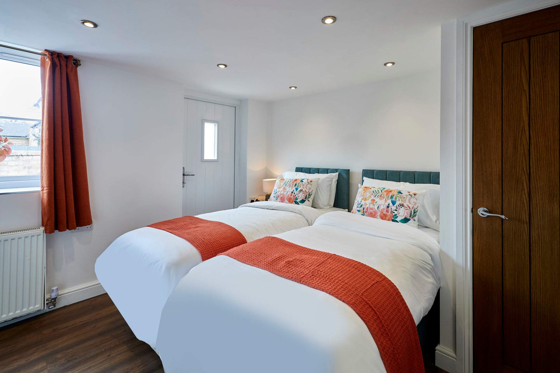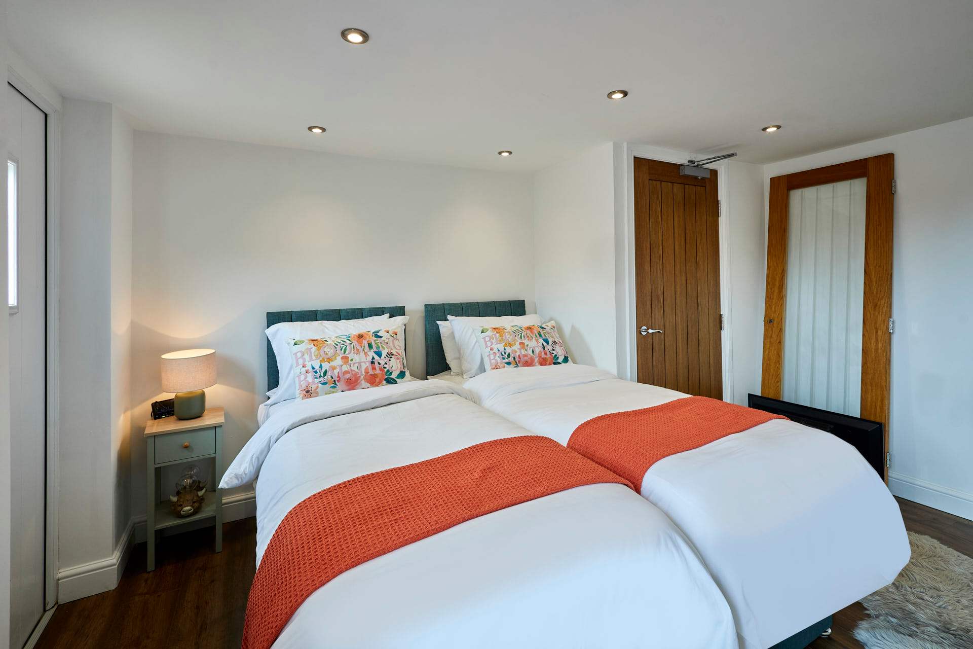 Inside, you’ll find a bright and inviting living space, complete with comfortable seating and tasteful décor that creates a true home-from-home feel. Being the heart of the home, this room is the ideal space for guests to gather and spend time together creating memories of their stay. The well-equipped kitchen provides everything needed to prepare delicious home-cooked meals or to grab a quick snack before heading out to explore the local area. Thoughtfully designed for convenience and practicality, the kitchen caters perfectly to both short and long stays. The property also features a dining area that provides guests the chance to enjoy these meals together. Both bedrooms are beautifully presented, offering soft bedding and a tranquil setting to ensure a restful night’s sleep. The main feature of both rooms is the comfortable king-sized beds that can be split up into sets of twin beds upon request. There is also a bright and calming bathroom that is the perfect space for guests to refresh themselves throughout their stay.