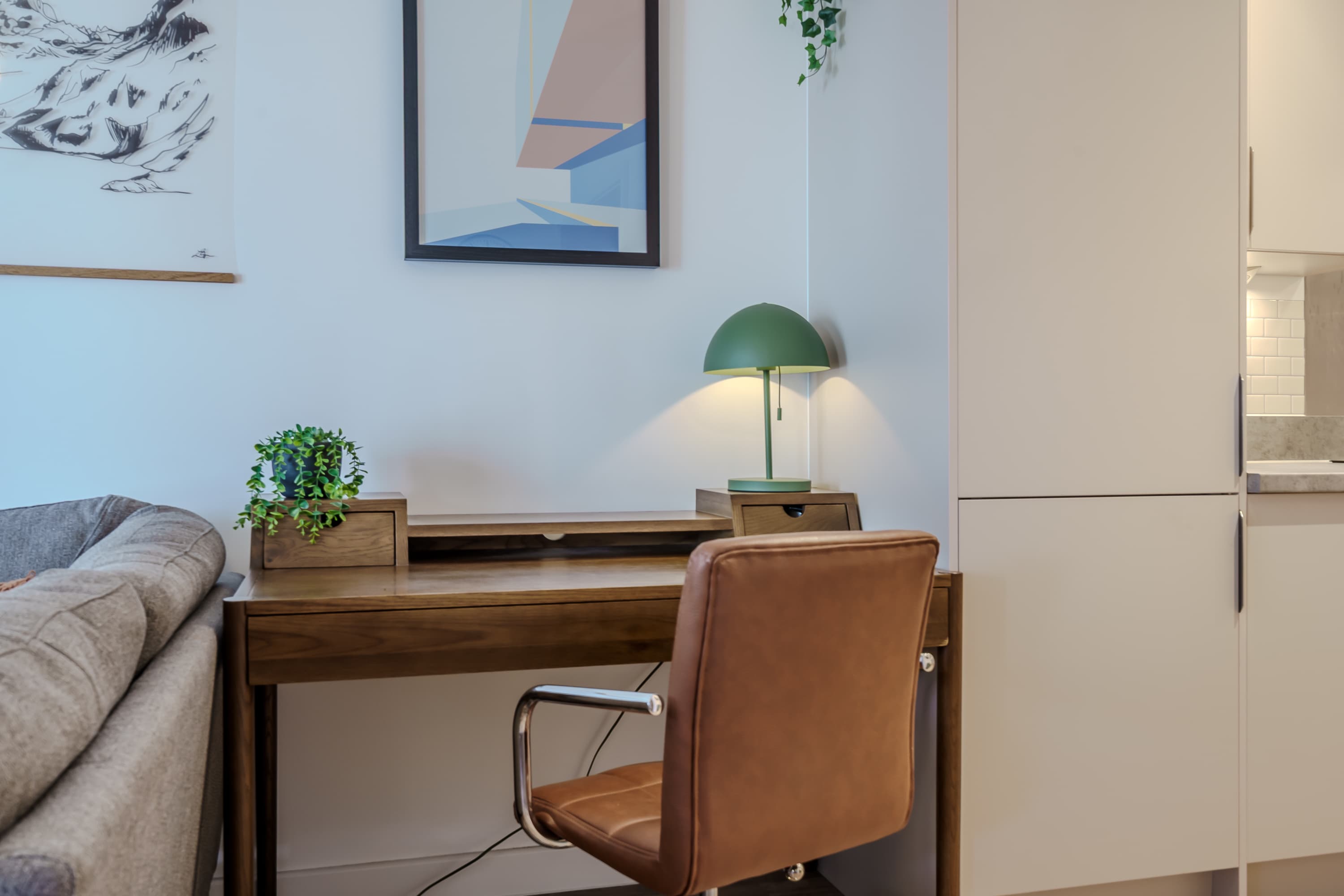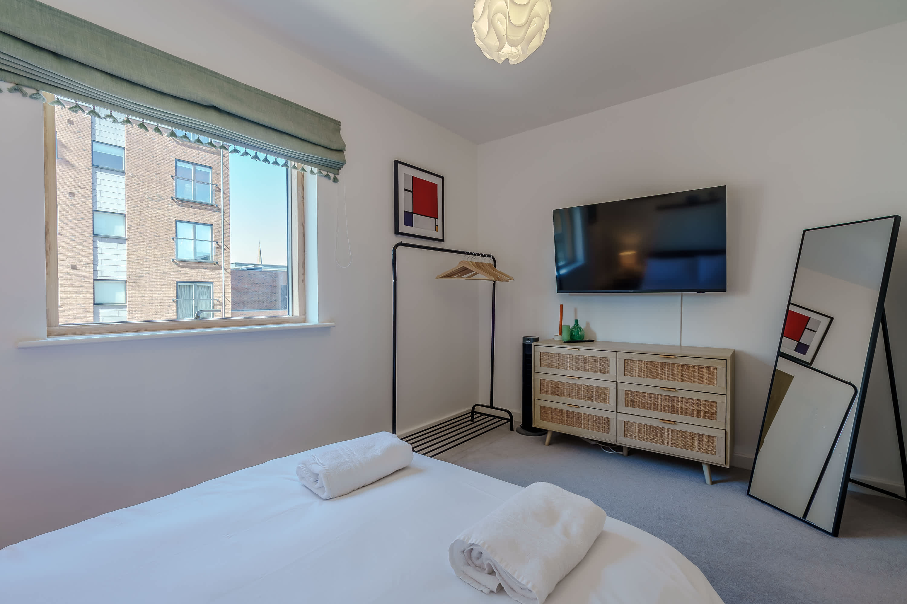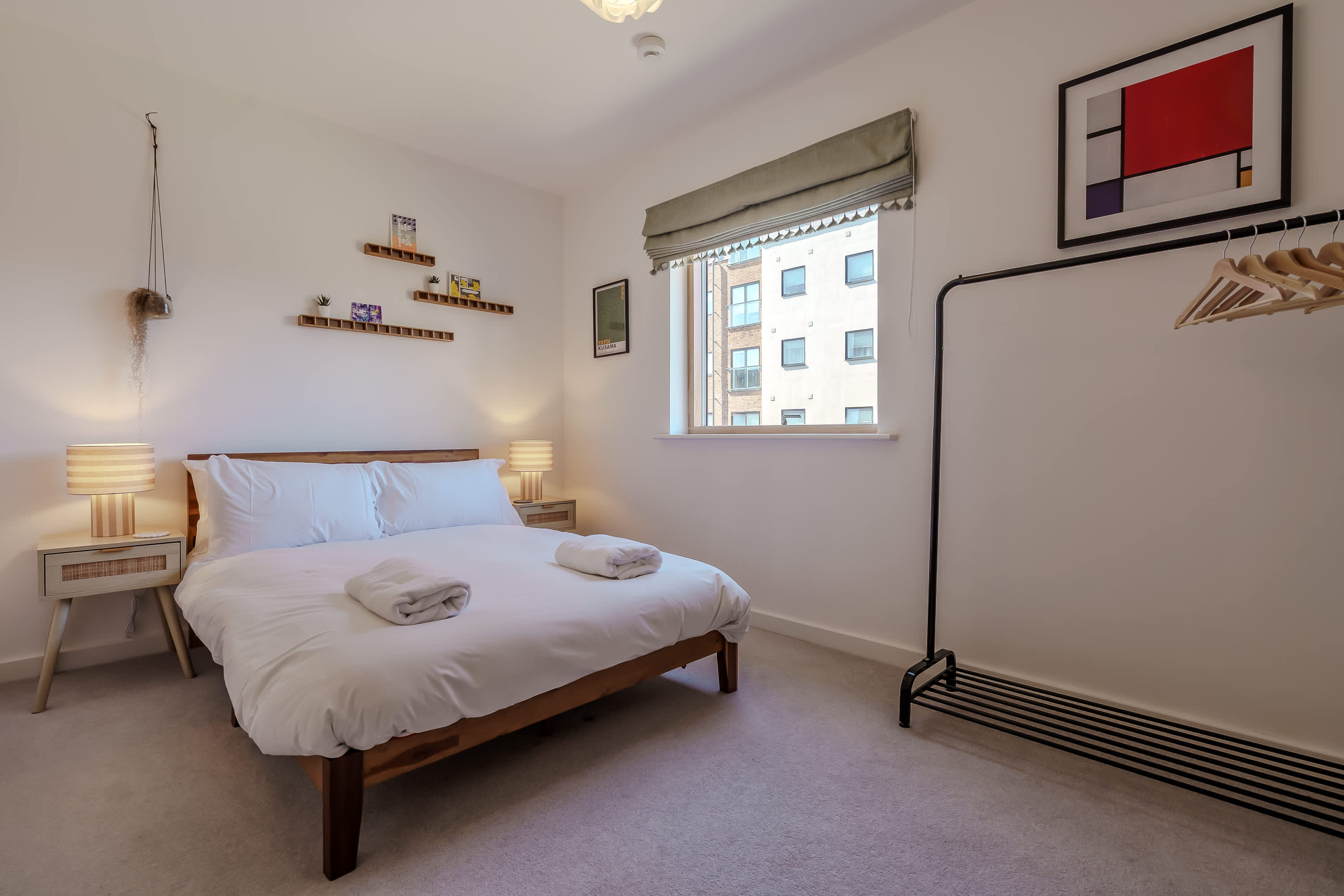 The heart of this home is the cosy open-plan living area that features comfortable seating and is ideal for guests looking to relax and unwind. It is thoughtfully decorated to create a warm and welcoming space where guests can curl up with a book or watch television. The fully equipped kitchen provides everything guests need for quick snacks or home cooked meals during their stay. This creates convenience for guests, whether they're enjoying a short break or a longer getaway. The bedroom features a comfortable bed and ample storage space, creating a calm and inviting setting where guests can truly unwind. Soft furnishings and a soothing colour palette add to the sense of tranquillity, making it easy to relax after a busy day in the city. The bathroom is a bright and well-appointed space designed to offer both comfort and convenience. Whether you’re getting ready to explore the city or settling in for a relaxing evening, the bathroom provides a calm and functional environment to suit your needs. The balcony offers a charming outdoor space with seating where guests can relax and enjoy a breath of fresh air. Perfect for starting the day with a morning coffee or unwinding in the evening, it provides a peaceful spot to sit back and take in the surroundings.